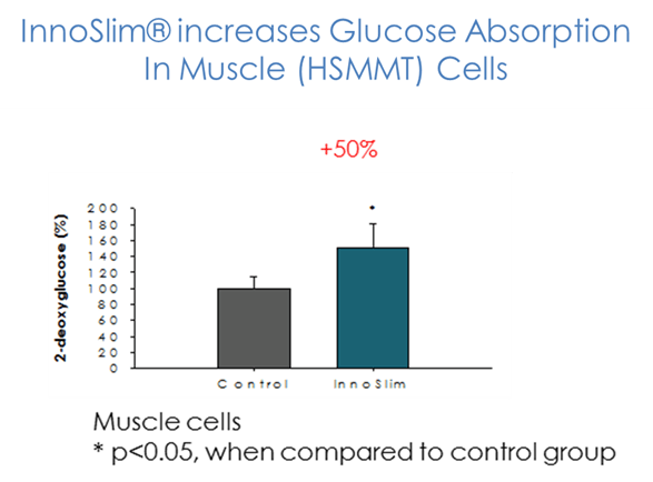 細胞實驗結果茵若纖能增加肌肉細胞對於葡萄糖吸收。