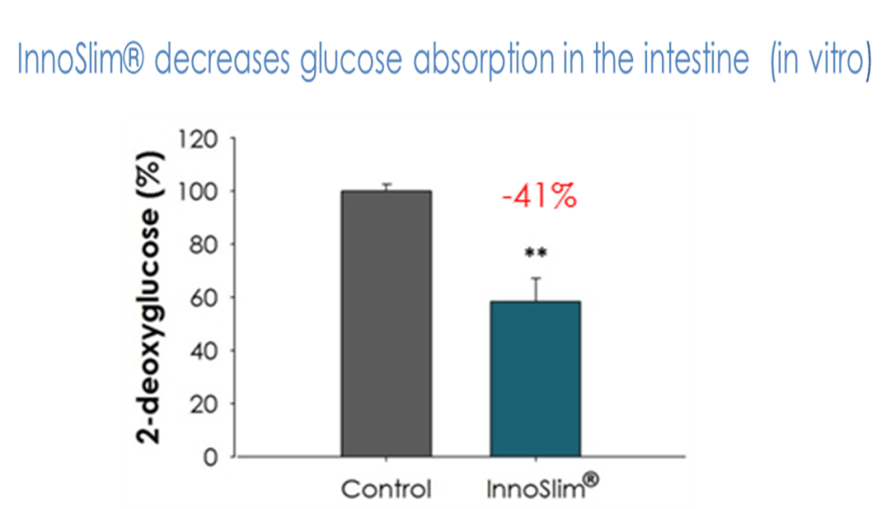 細胞實驗發現茵若纖能使小腸細胞對葡萄糖的吸收減少41%,由消化系統源頭阻斷糖份的吸收。